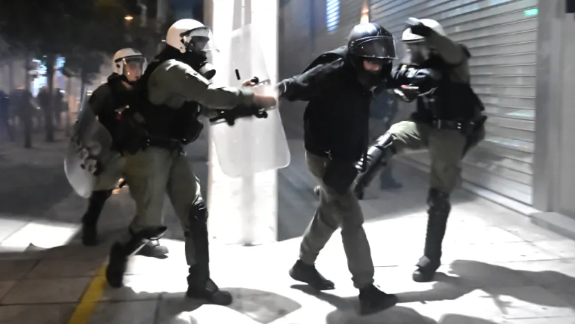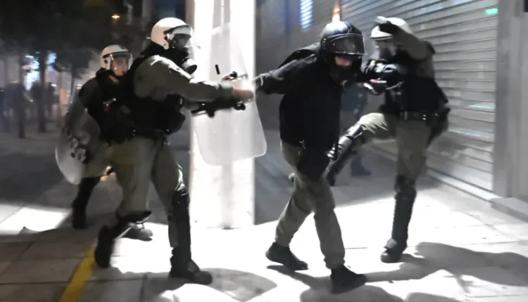 Η σχετική ανακοίνωση της αστυνομίας: «Την Παρασκευή 31 Οκτωβρίου 2025 και ώρα 18:30′, με αφορμή την συμπλήρωση ενός έτους από τον θανάσιμο τραυματισμό του Κυριάκου Ξυμητήρη από έκρηξη βόμβας στους Αμπελόκηπους, πραγματοποιήθηκε προγραμματισμένη συγκέντρωση στα Προπύλαια και πορεία στο κέντρο της Αθήνας με τη συμμετοχή 500 μελών συλλογικοτήτων. Λίγο πριν τις 20:30′ αφού είχε εξελιχθεί ομαλά η συγκέντρωση και πορεία των ατόμων σε κεντρικούς οδικούς άξονες της Αθήνας, κατά την αποχώρηση των συγκεντρωμένων προς την περιοχή των Εξαρχείων, ομάδα ατόμων προχώρησε σε επίθεση με χρήση καδρονιών και ρίψη αντικειμένων και φωτοβολίδων σε βάρος των αστυνομικών δυνάμεων στη συμβολή των οδών Πανεπιστημίου και Εμ. Μπενάκη. Οι αστυνομικοί απώθησαν τους επιτιθέμενους για την αποτροπή περαιτέρω επιθέσεων και την αποκλιμάκωση της κατάστασης, ενώ παράλληλα με επιχειρησιακή τακτική συνέλαβαν -5- άτομα. Από την επίθεση τραυματίστηκαν -4- αστυνομικοί ενώ από το σημείο της επίθεσης κατασχέθηκαν ρόπαλα και κράνη».