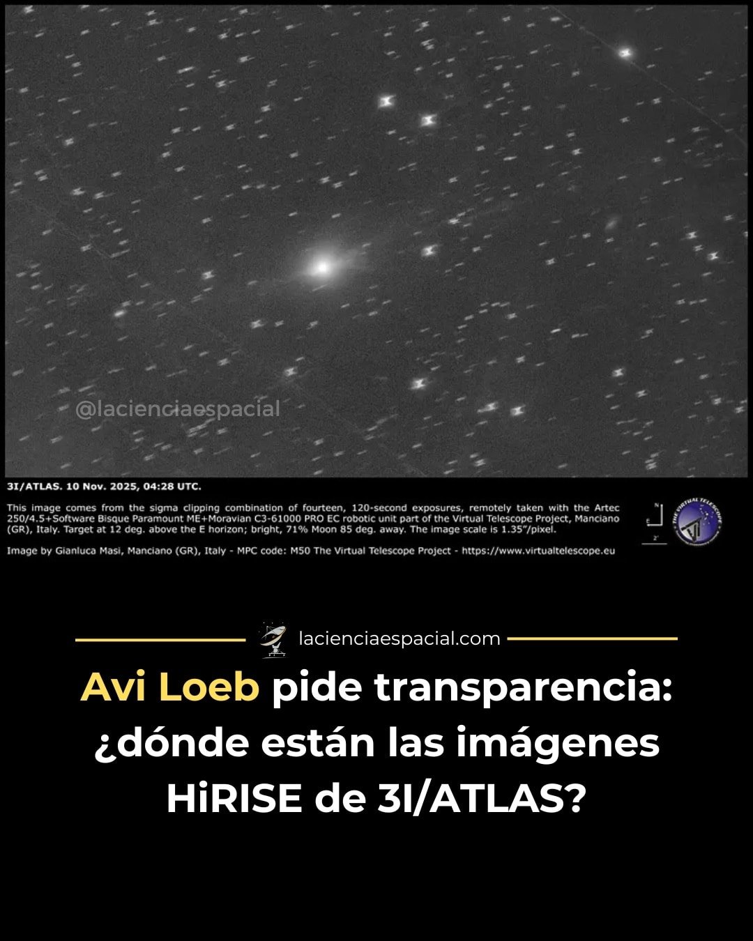 Ο αστροφυσικός Avi Loeb, διευθυντής του Galileo Project του Χάρβαρντ, ζήτησε από τη NASA να δημοσιεύσει εικόνες που τράβηξε η κάμερα HiRISE του Mars Reconnaissance Orbiter στο διαστρικό αντικείμενο 3I/ATLAS, που τραβήχτηκε μεταξύ 2 και 3 Οκτωβρίου 2025, όταν το αντικείμενο πέρασε μόνο του 29 εκατομμύρια χιλιόμετρα από τον Άρη.