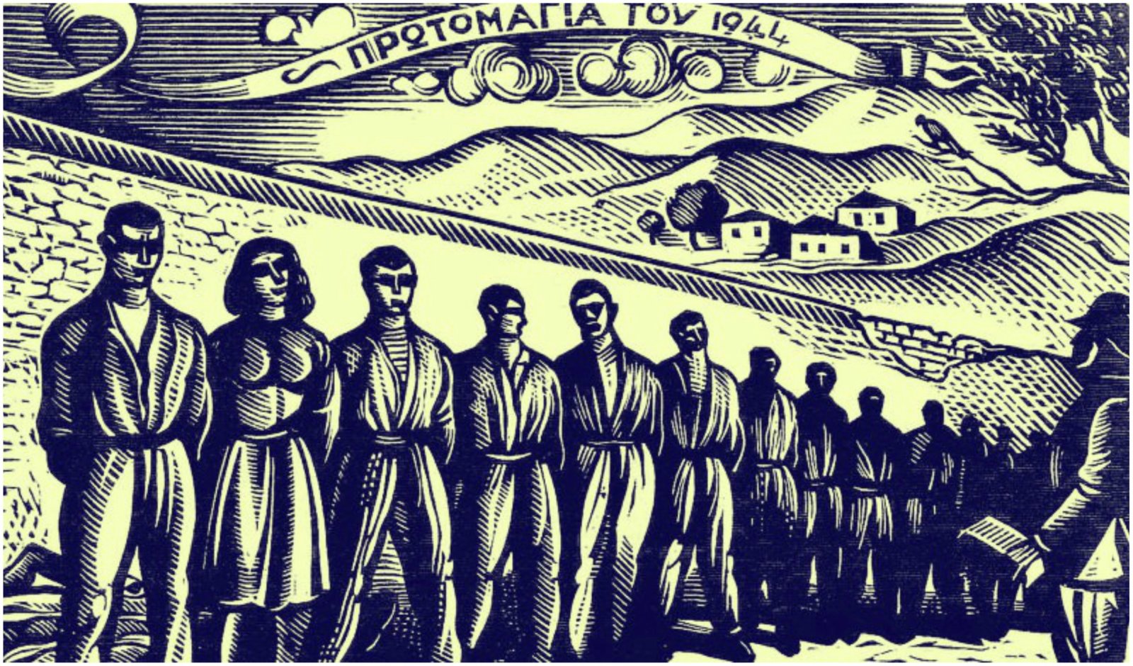 Ο τυφεκισμός 200 Κομμουνιστών την 1.5.1944. Ο τυφεκισμός όλων των ανδρών τους οποίους θα συναντήσουν τα γερμανικά στρατεύματα επί της οδού Μολάων προς Σπάρτην έξωθεν των χωρίων. Υπό την εντύπωσιν κακουργήματος τούτου Έλληνες εθελονταί εφόνευσαν αυτοβούλως 100 άλλους κομμουνιστάς.