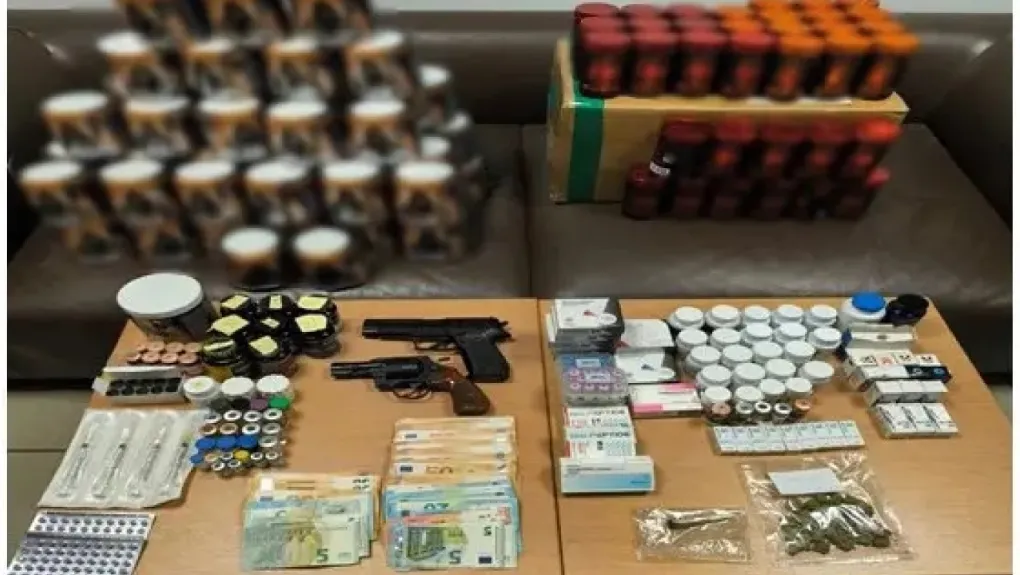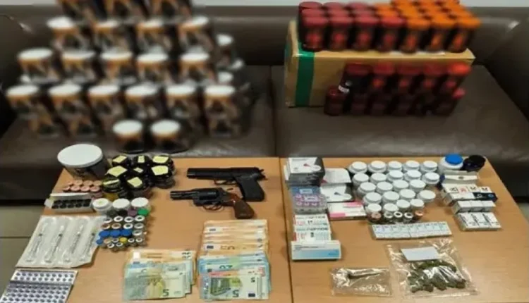Κατά τη διάρκεια των ερευνών που πραγματοποιήθηκαν σε σπίτια, στο γυμναστήριο-κατάστημα καθώς και σε όχημα, οι αστυνομικοί εντόπισαν και κατέσχεσαν τεράστιο αριθμό παράνομων ουσιών και άλλων αντικειμένων.